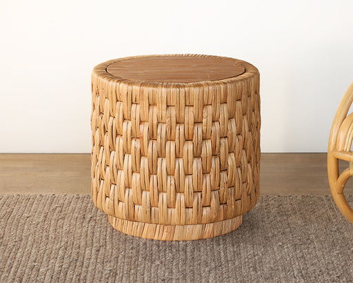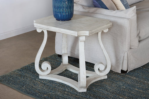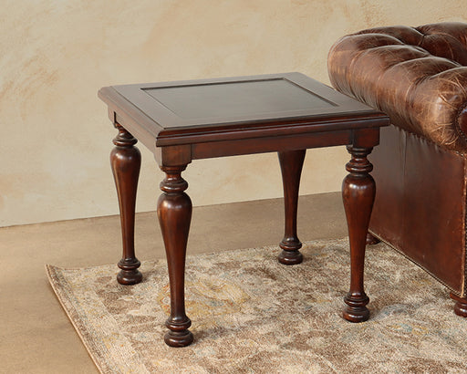 Cherry End Table w/ Embossed Scrolled Metal Top