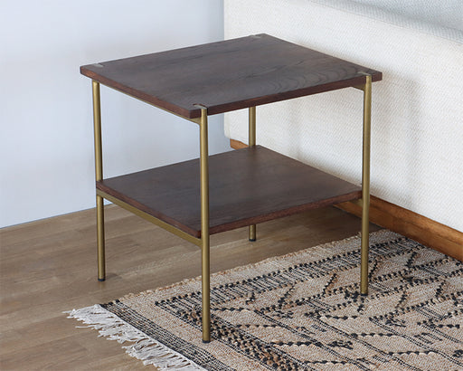 Umber Brown End Table with Antique Brass Base