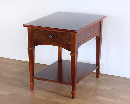 Cherry End Table w/ Burled Wood Drawer