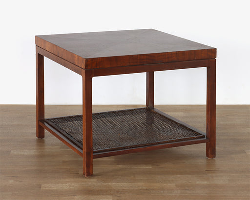 Mid-Century Square Side Table with Cane Accent Shelf, Vintage 1960's