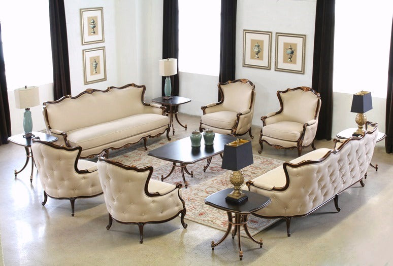 Ornate French Style Tufted-Back Sofa with Gold Gilt Frame