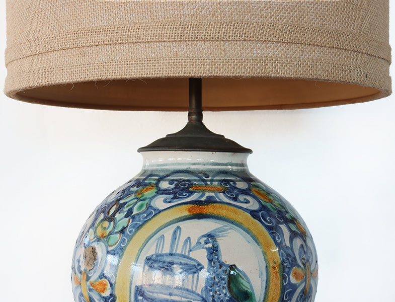 Antique Delft Ceramic Lamp with Bird and Fountain