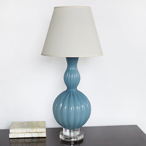 Ribbed Glass Lamp with Light Gold Silk Shade