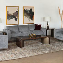 Burnt Orange Damask Sofa with Black Fretwork Arms