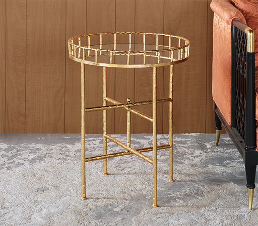 Gold Leaf End Table with Tray Style Mirror Top - Cleared