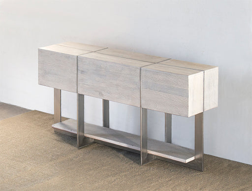 Tobacco Stained Reclaimed Wood Cube Console Table