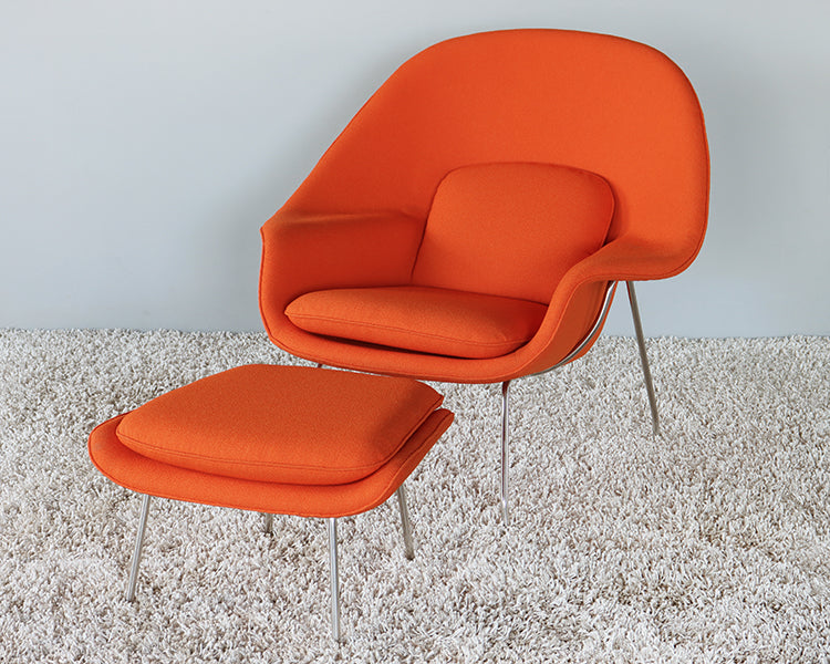 Orange Saarinen Style Womb Chair and Ottoman