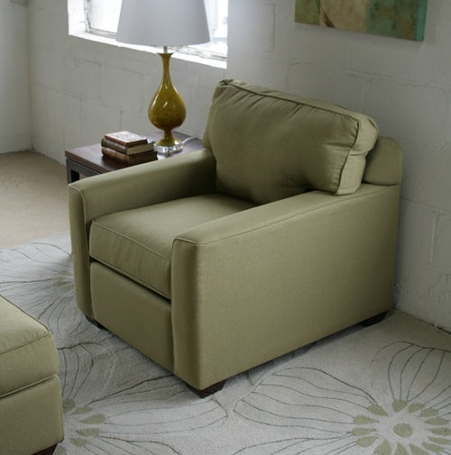 Tufted Back Club Chair in Linato Cream with Black Walnut Turned Legs
