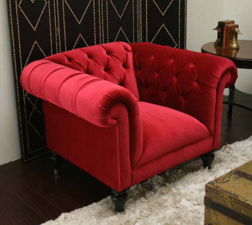Mitchell Gold Chester Chair in Raspberry Red Velvet
