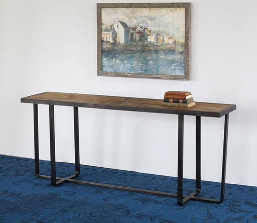 Dark Eucalyptus Wood Curved Console w/ Bronze Trim