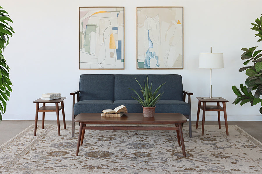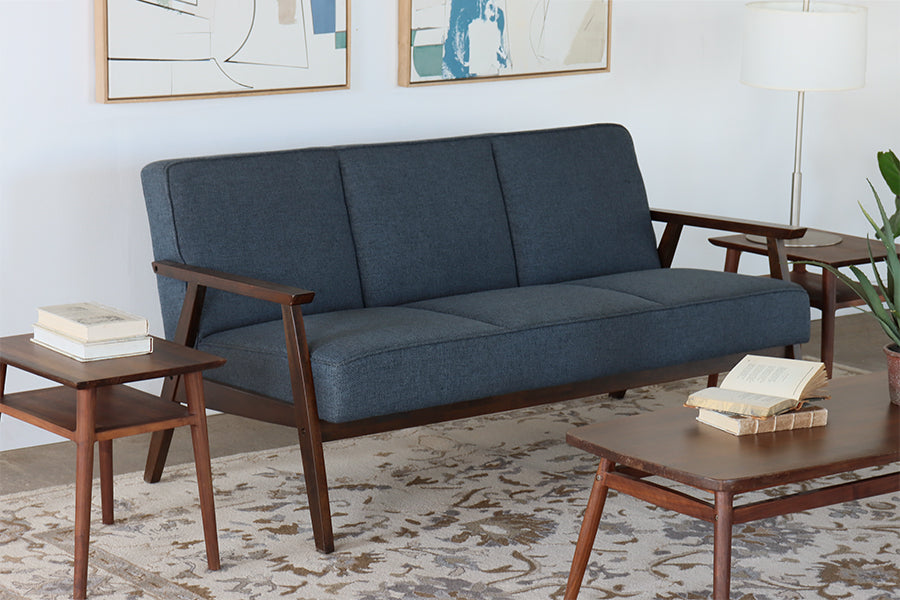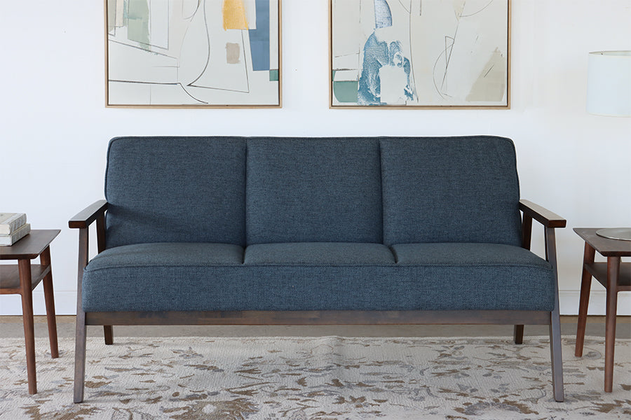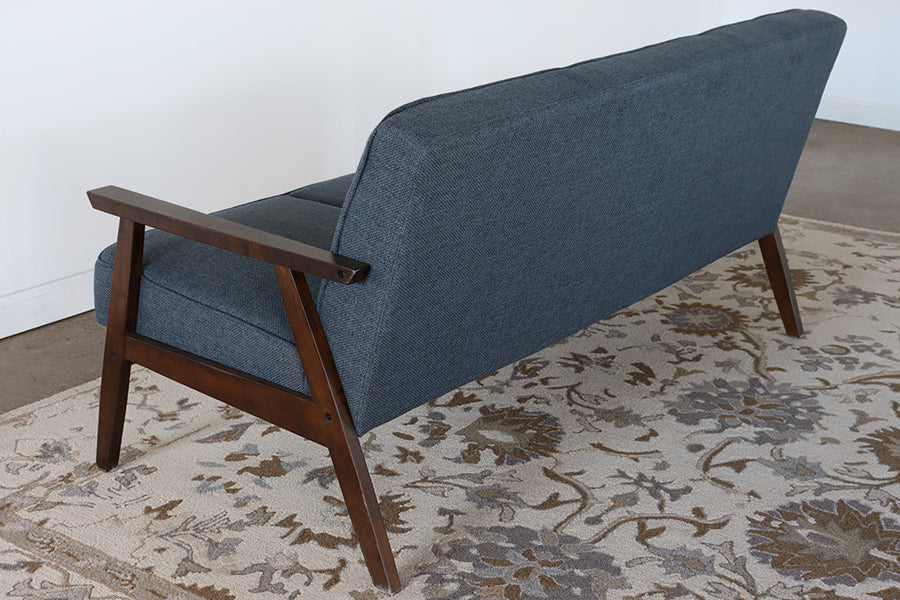 Blue Loveseat with Wood Arms