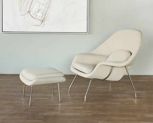 Tan Putty Saarinen Style Womb Chair and Ottoman