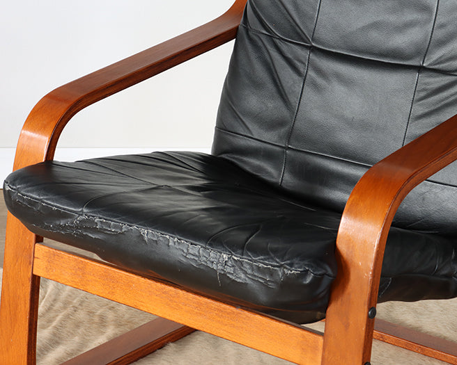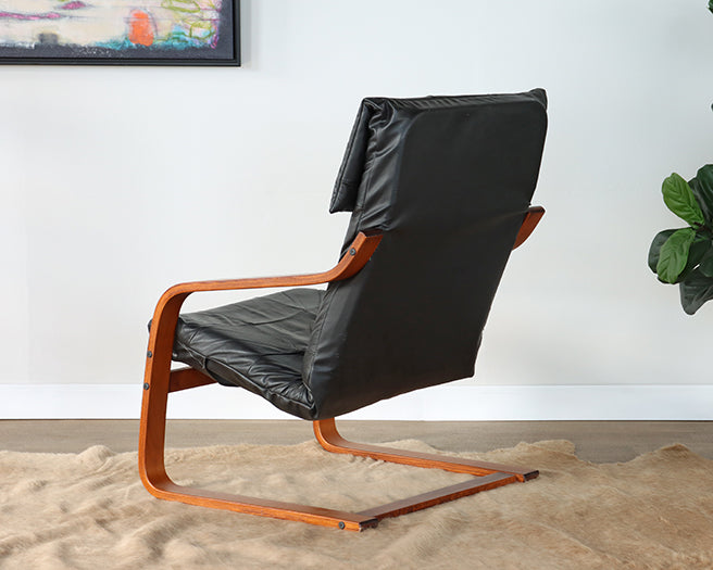 Vintage Black Leather Teak Lounge Chair