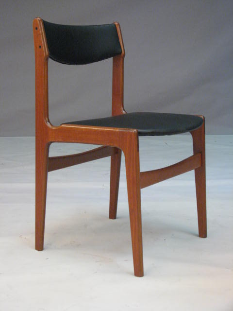 Danish Modern Teak Side Chairs with Black Leather Upholstery