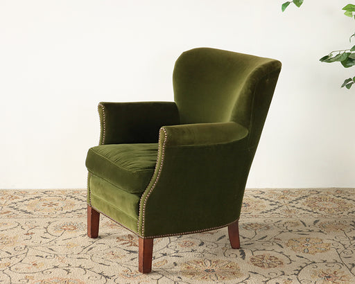 Hunter Green Velvet Small Club Chair with Nailhead Trim