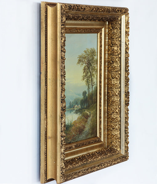 Antique English Landscape Oil on Canvas C 1880s 17W x 21H - Cleared Art