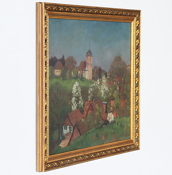Antique French Impressionist Village Scene C. 1920s 27W x 22H - Cleared Art