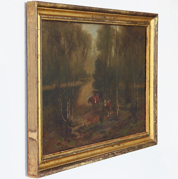 Hudson River School Cows Grazing Late 19th C. 34W x 22H - Cleared Art
