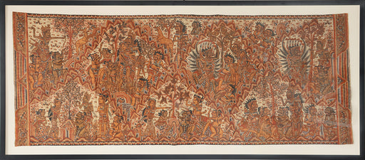 Antique Balinese Tapestry in Black Wooden Frame 89W x 38.5H - Cleared Art