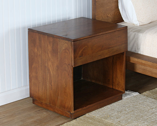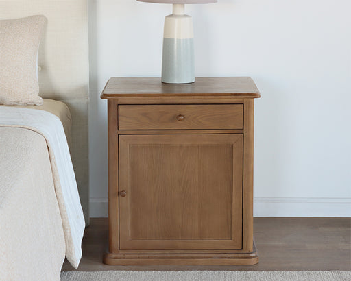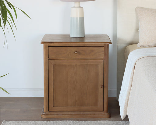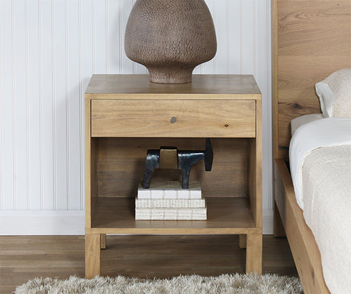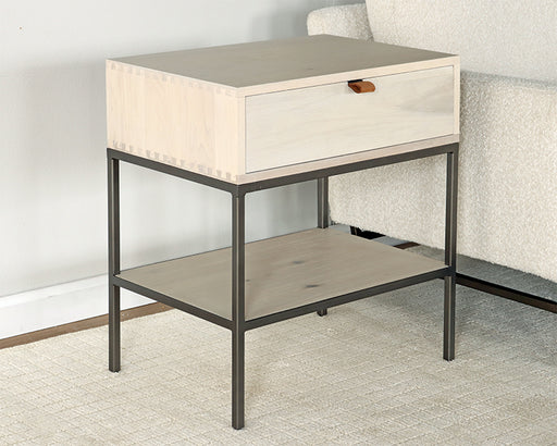 Light Poplar 1 Drawer Nightstand with Leather Pull