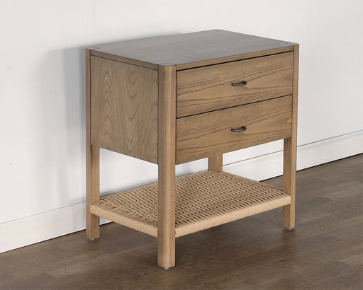 Sable Brown Oak 2 Drawer Nightstand With Brass Pulls