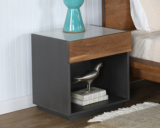 Dark Grey Lacquered Nightstand With Oak Drawer
