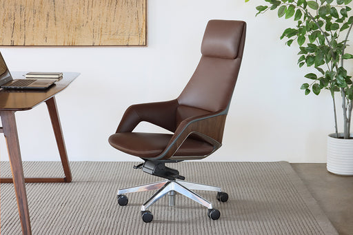 Ultra-Modern Brown Leather Tall Back Office Chair