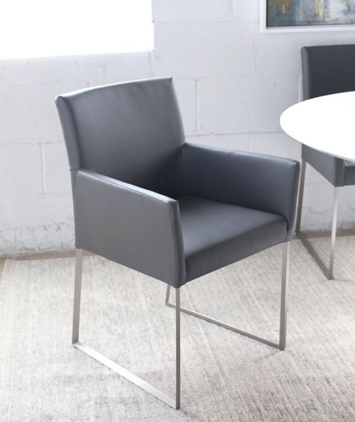 Gray Leatherette and Polished Stainless Steel Dining Chair