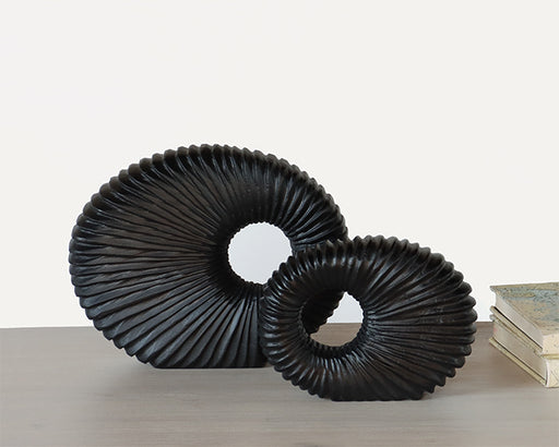 Set Of 2 Black Notched Wood Sculptures - Cleared