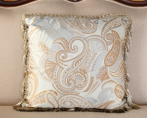 Pale Blue Paisley Pillow with Gold Tassel Fringe
