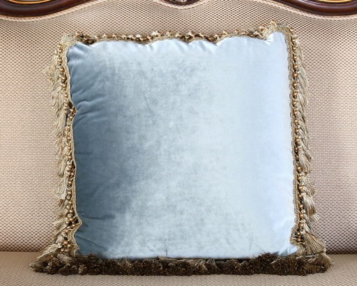 Pale Blue Velvet Pillow with Gold Tassel Fringe