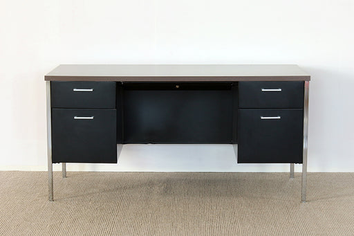 Sit Or Stand Desk With Silver Base & Hanging Cabinet
