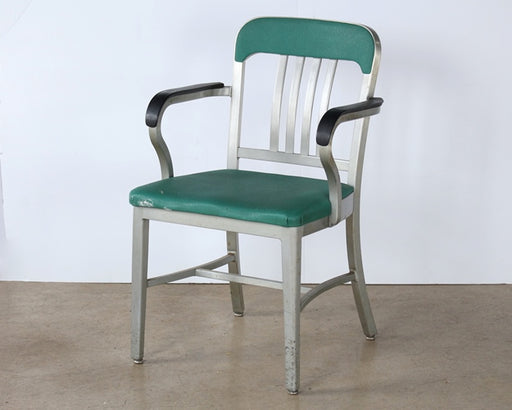 Slatback Metal Armchair with Green Vinyl Seat & Back