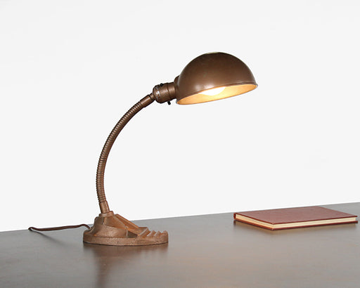 Vintage Copper Gooseneck Lamp With Cast Iron Base