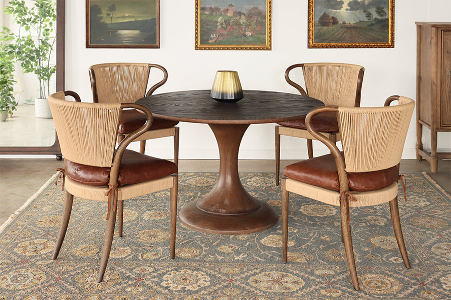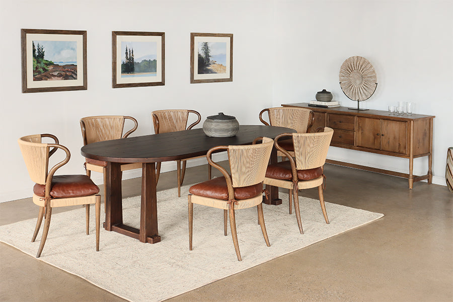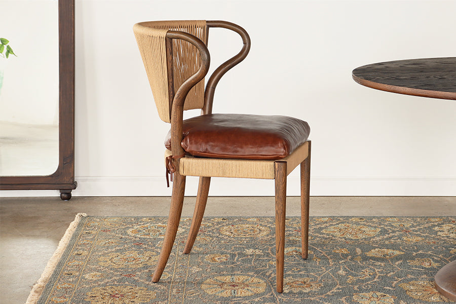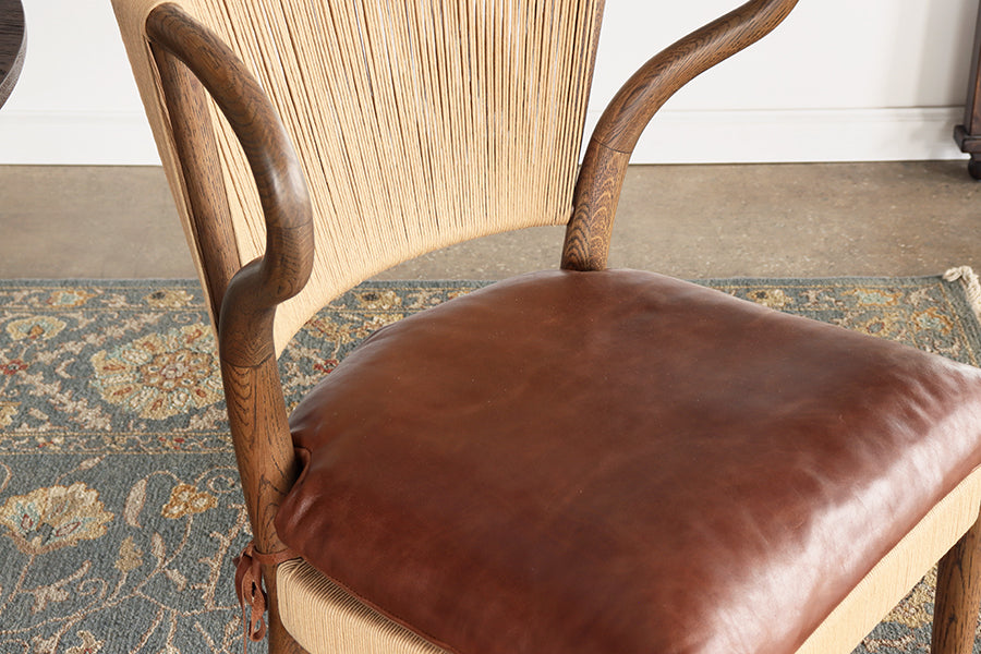 Rush and Oak Side Chair with Mahogany Leather Seat
