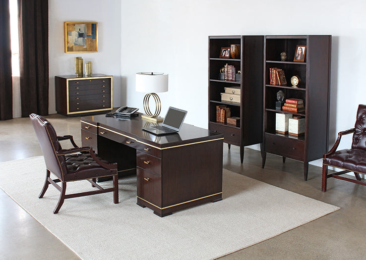 C-Suite Dark Wood Executive Credenza with Gold Accents