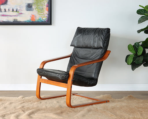 Vintage Tufted Leather Club Chair w/Oak Feet